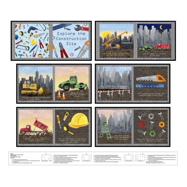 Explore the Construction Site Fabric Book Panel to sew